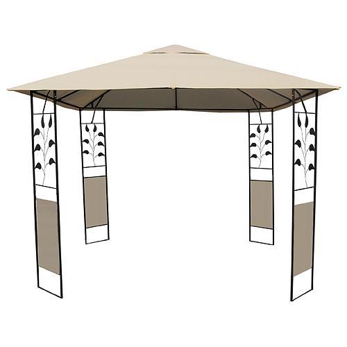 Záhradný vonkajší altánok vytvára súkromné a príjemné miesto na trávenie letných posedení s rodinou a priateľmi. Bočné obdĺžníkové steny, rovnako ako vrchná časť pod plachtou, sú nosnými časťami celého altánku. Sú vyrobené z pevného kovu, ktorý zabezpečuje stabilitu, pevnosť a bezpečnosť altánku. Bočné obdĺžníky sú navyše obzvláštnené výplňou menších obdlžníkov a ornamentov v tvare kvetín, čím sa v altánku budete cítiť naozaj príjemne. Rozmery altánku sú 3 x 3 m, čo je dostatočný priestor pre umiestnenie záhradného nábytku. Povrch strechy je vyrobený z polyesterového materiálu, ktorý poskytuje naozaj odolnú ochranu voči UV žiareniu a taktiež voči vode. Altánok vás teda ochráni nie len pre páliacim slnkom, ale taktiež pred nepríjemným dažďom. Plachta je béžovej farby. Altánok je vhodné umiestniť na rovný povrch.