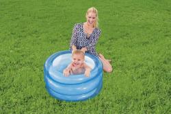 Bazénik ako stvorený pre detské huncútstva vo vode - nafukovací bazén Bestway® Kiddie Pool ponúka veľa zábavy pre deti, ktoré majú 2 a viac rokov a zároveň milujú špliechanie v bazéne počas horúcich letných dní. Tri rovnaké nafukovacie prstence s modrou/ružovou potlačou vytvárajú dokonalý bazén pre malých nezbedníkov a ich kamarátov. Plusom je aj materiál odolný voči prepichnutiu, ktorý zvládne dlhé roky detských vodných hier.