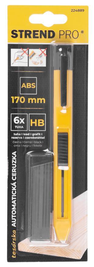 Tesárska automatická ceruzka Strend Pro so sponou je primárne určená na značenie drevených povrchov s čiernou tuhou tvrdosti HB. Túto ceruzku netreba strúhať, má hranatý tvar. Rozmery: 16x170 mm. Balenie obsahuje 6 ks čiernej tuhy.