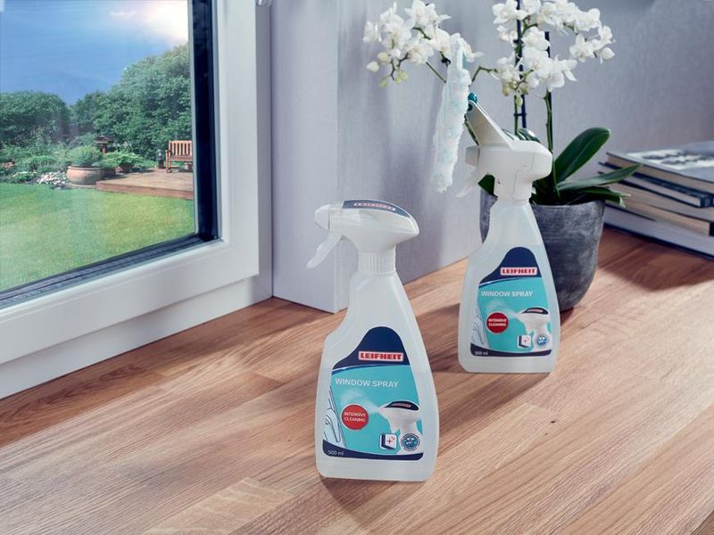 Čistič na okná s objemom 500 ml s rozprašovačom a integrovaným mopom na okná, návlek na mop je vyrobený zo špeciálneho mikrovlákna, ktoré priťahuje a zachytáva nečistoty. Návlek je možné prať v práčke bez aviváže.