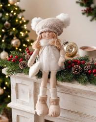 Dekorácia MagicHome Vianoce, Deti, biele, sediace, 22 cm