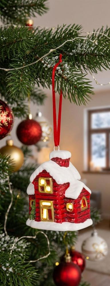 Dekorácia MagicHome Vianoce, Domček, LED, terakota, závesný, 5,5x5x7,2 cm