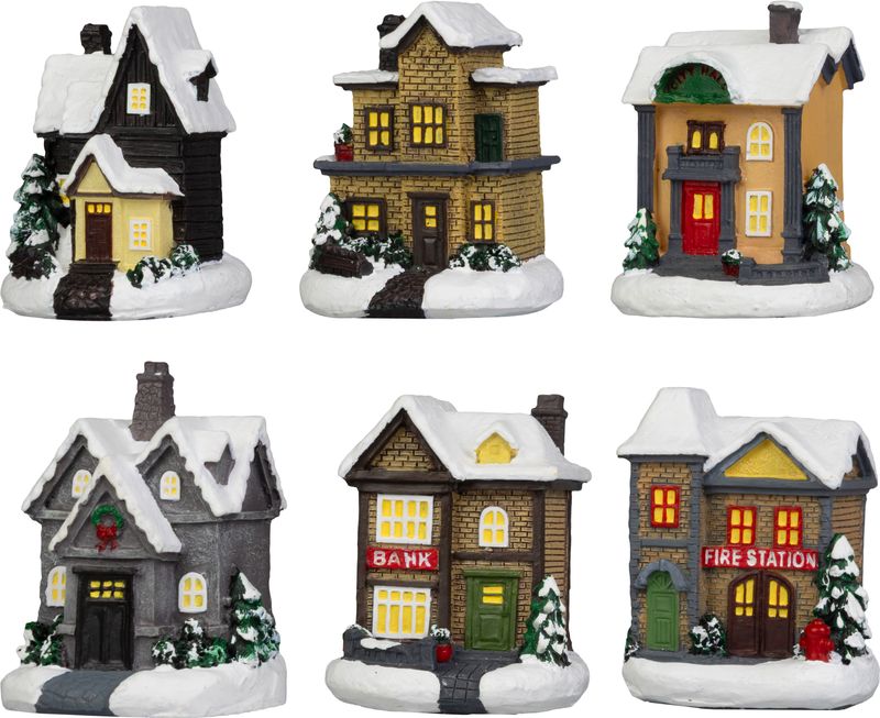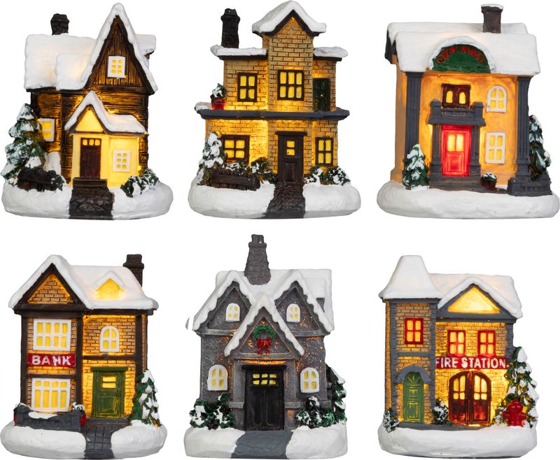- Dekorácia MagicHome Vianoce, domček, polyresin, 1xLED teplá biela, 6x6x8 cm, 2xLR44, mix d