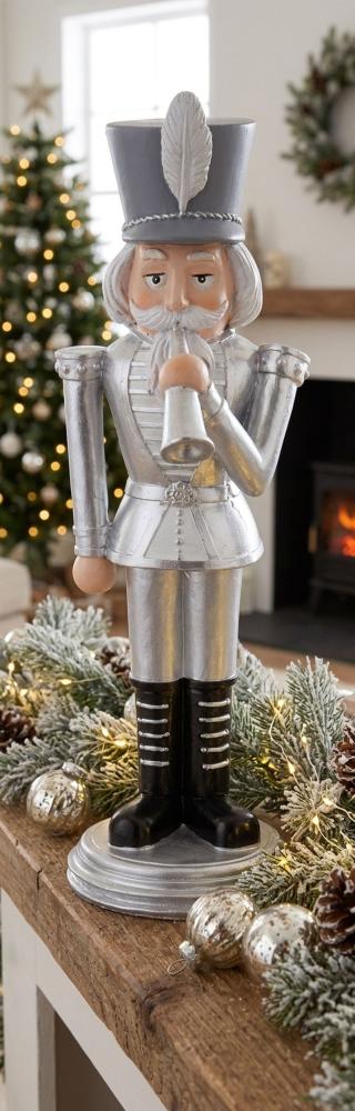 Dekorácia MagicHome Vianoce, Luskáčik s trúbkou, strieborný, polyresin, 20x20x30 cm
