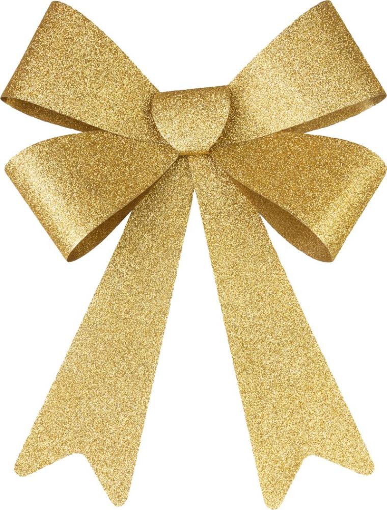 Dekorácia MagicHome Mašľa na vianočný veniec z trblietavého materiálu, ktorá rozžiari interiér vášho domu. Môže sa použiť aj na vianočnú girlandu. Farba mašle je zlatá a má rozmer 38 x 30 cm.
