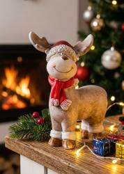 - Dekorácia MagicHome Vianoce, Sob s červeným šálom, polyresin, 20x20x24 cm
