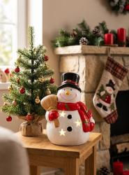- Dekorácia MagicHome Vianoce, Usmiaty snehuliak, LED, terakota, 8,5x8,2x12,5 cm