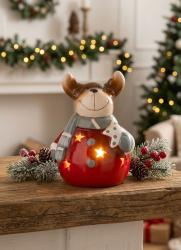 Dekorácia MagicHome Vianoce, Usmiaty sob, LED, terakota, 8,5x8,2x12,5 cm