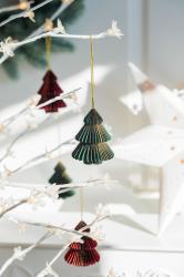 Vytvorte si jedinečnú vianočnú atmosféru s elegantnými papierovými dekoráciami v tvare stromčeka. Tieto ľahké a štýlové ozdoby sú vyrobené z kvalitného ručného papiera a vynikajú svojou originálnou skladacou štruktúrou, ktorá vytvára 3D efekt.