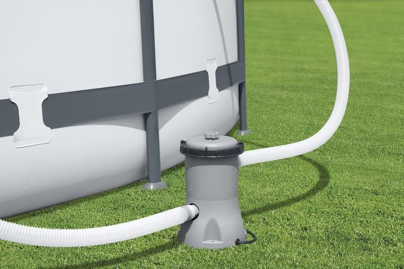 Filtračná pumpa udržiava bazénovú vodu priezračnú a čistú počas horúcich letných mesiacov. Filtračná pumpa zabezpečuje cirkuláciu čistej vody tak, že ju prečerpáva z bazéna cez filtračnú vložku a späť. Súčasťou filtračnej pumpy sú dve hadice pripevnené k dvom samostatným bodom na bazéne. Voda sa čerpá z bazéna cez vstupnú hadicu, dezinfikuje sa filtračnou vložkou a prečerpáva sa späť cez výstupnú hadicu. Pumpa sa dodáva s inštalačnou príručkou, ktorá vás prevedie jednoduchým procesom nastavenia.