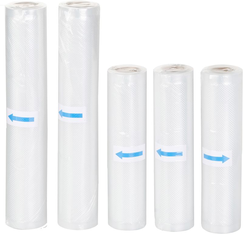 - Praktická sada: Obsahuje 3 rolky s rozmermi 20x300 cm a 2 rolky s rozmermi 28x300 cm, čo poskytuje flexibilitu pre balenie rôznych veľkostí potravín.