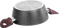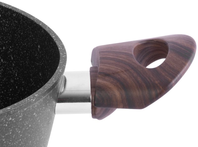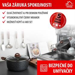 Ak si potrpíte nakvalitnékuchynské riady, tento hrniec je pre Vás ako stvorený. Hrniec s pokrievkou MagicHome Black Marble Line jevyrobený zo zliatiny hliníka s nepriľnavým povrchoma3-vrstvovým mramorovým náterom. Má3 mm indukčné dno, ktoréšetrí energiu. Rukoväť obsahuje drevený náter s ochranou proti plameňu. Hrniec jevhodný na všetky typy sporákov: indukcia, elektrika, plyn, sklokeramika a halogén a je tiež vhodný do umývačky riadu. Nevhodný do rúry. Ješetrný k životnému prostrediu, neobsahuje PFOA, PFOS, VOC, PB ani CD. Objem: 2,2 litre.