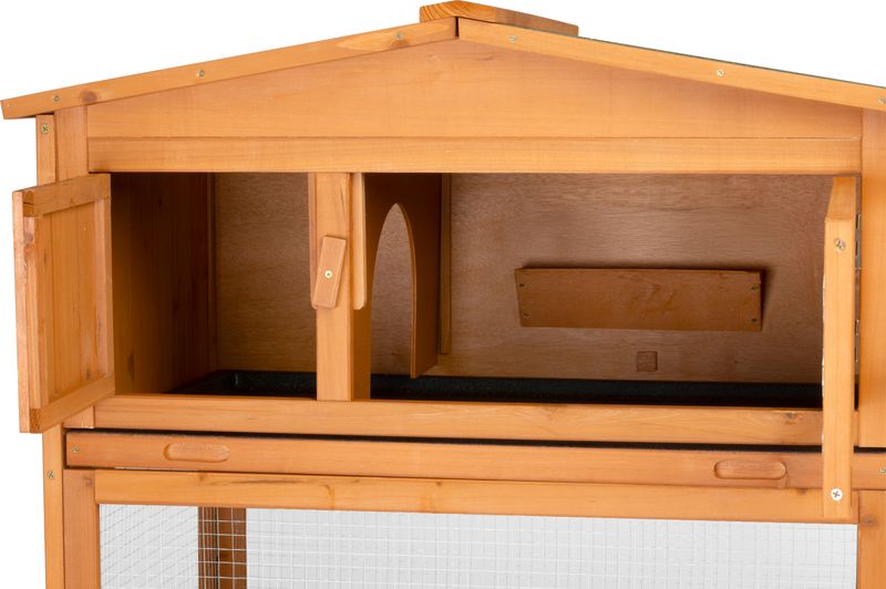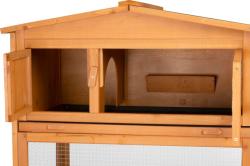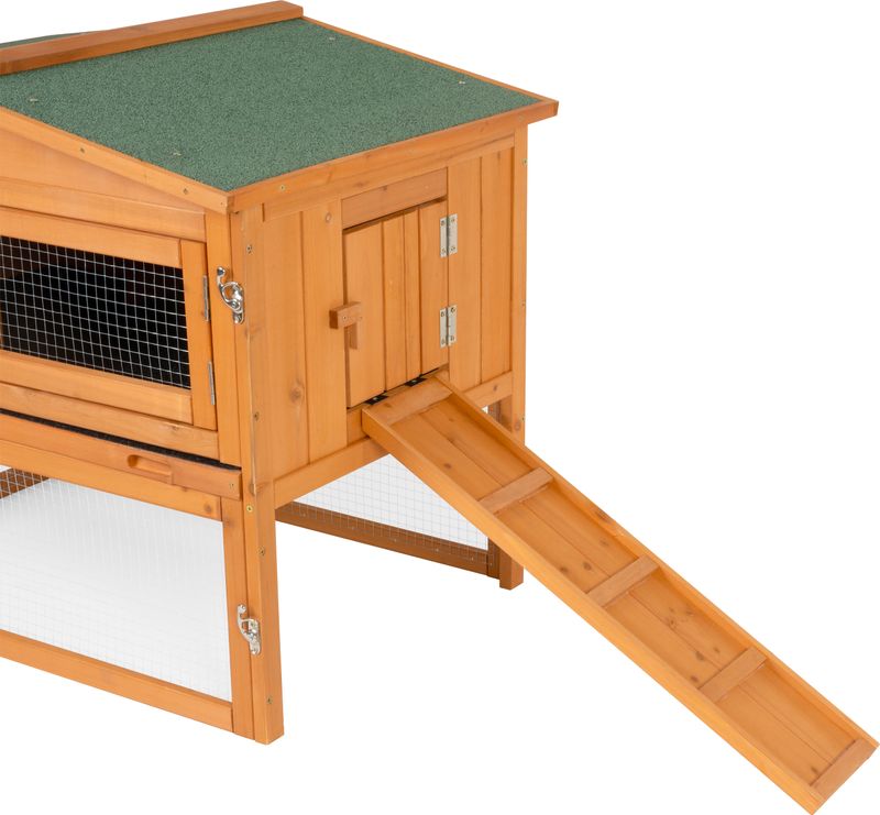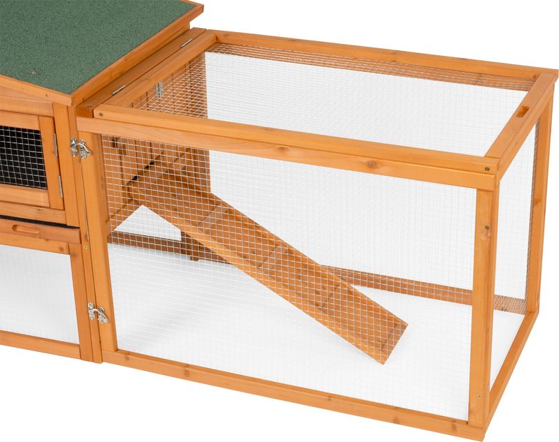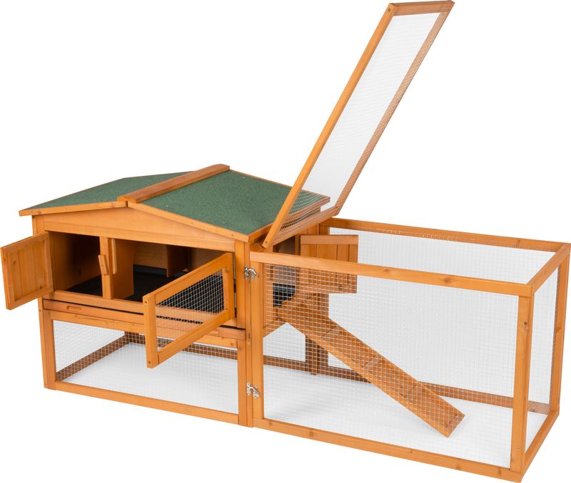 Priestranná králikáreň Strend Pro poskytuje bezpečné a pohodlné ustajnenie pre králiky a iné drobné zvieratá. Kombinuje uzavretú oddychovú časť s krytou strechou a veľký drôtený výbeh, ktorý zabezpečuje dostatok pohybu a čerstvého vzduchu.