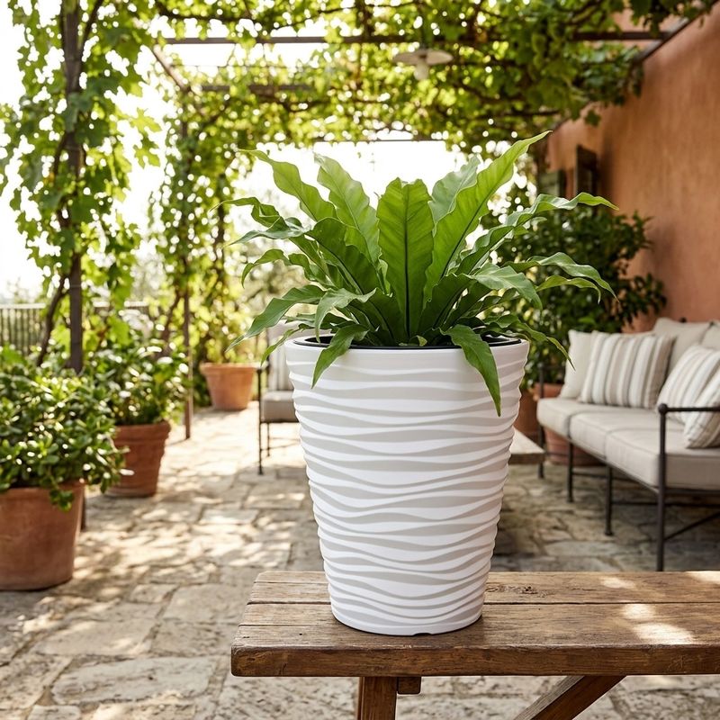 Plastový kvetináč, ktorý na prvý pohľad zaujme svojim moderným a zároveň veľmi elegantným dizajnom, vďaka ktorému bude krásnym doplnkom každej miestnosti, terasy či záhradky. Je vhodný nielen do interiéru, ale aj na celoročné vonkajšie použitie na balkónoch, parapetách, terasách či v záhradách. Je vyrobený z vysoko kvalitného, ľahko umývateľného materiálu, odolného voči mrazu a poveternostným vplyvom.