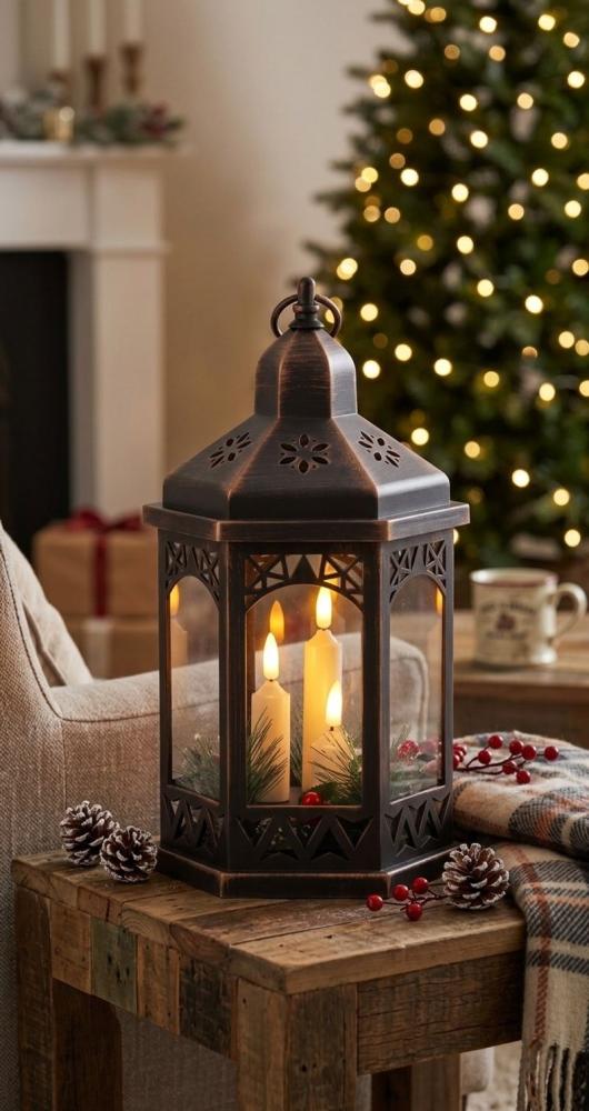 Lampáš MagicHome Vianoce Morocco, LED teplá biela, sviečky, čierny, 3xAAA, plast, časovač,