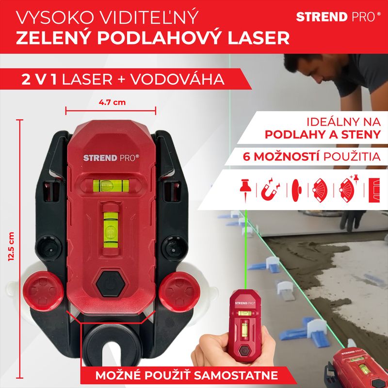 Laser Strend Pro SMD-RM20UG-Li, 2v1, Green, podlahový, USB nabíjanie