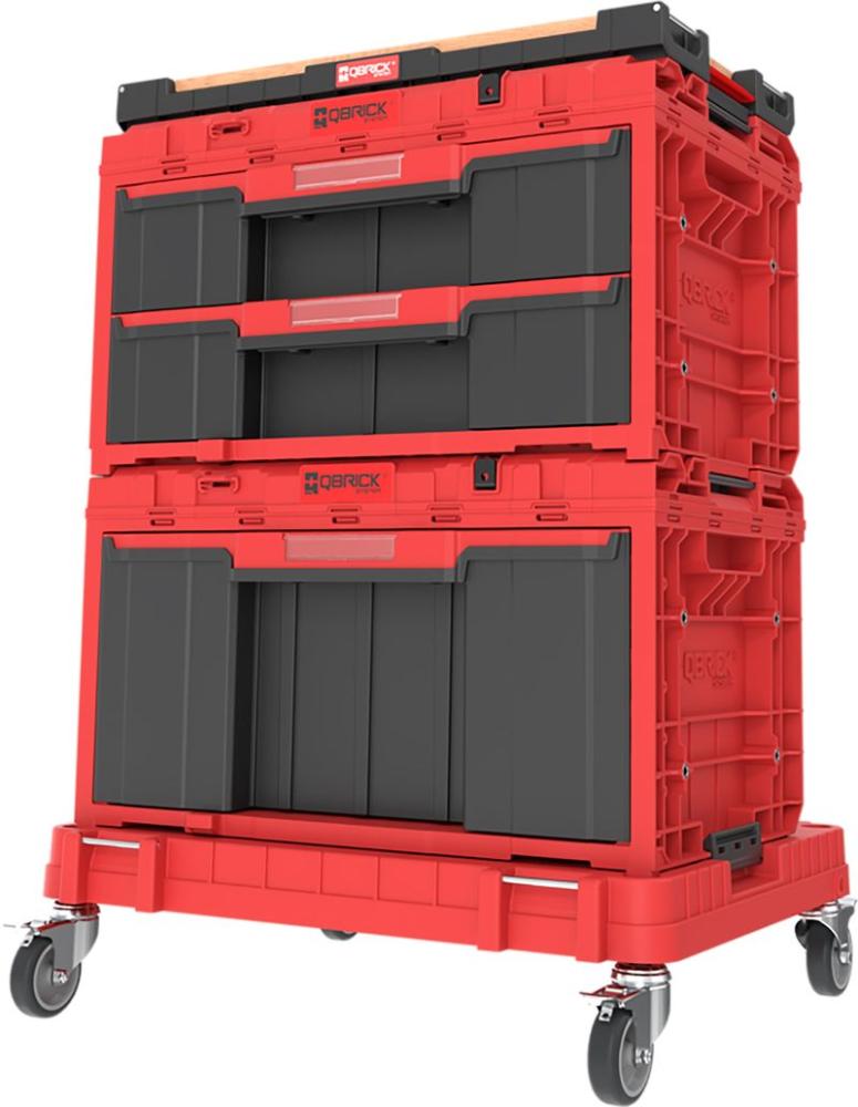 Profesionálny modulárny set pre dielňu aj montáže v teréne. Skladací systém QBRICK® ONE Workshop Drawers SET 7 spája organizáciu náradia, mobilitu a pracovnú plochu do jedného celku. Všetky moduly sú vzájomne kompatibilné a pevne sa prepájajú cez systémové zámky.