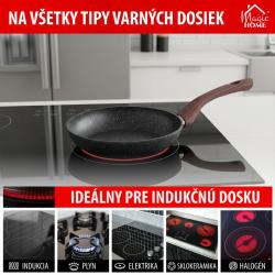 Ak si potrpíte nakvalitnékuchynské riady, táto panvica je pre Vás ako stvorená. Panvica MagicHome Black Marble Line jevyrobená zo zliatiny hliníka s nepriľnavým povrchoma3-vrstvovým mramorovým náterom. Má3 mm indukčné dno, ktoréšetrí energiu. Rukoväť obsahuje drevený náter s ochranou proti plameňu. Panvica jevhodná na všetky typy sporákov: indukcia, elektrika, plyn, sklokeramika a halogén a je tiež vhodná do umývačky riadu. Nevhodná do rúry. Ješetrná k životnému prostrediu, neobsahuje PFOA, PFOS, VOC, PB ani CD. Priemer: 28 cm.