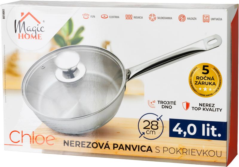 - Panvica MagicHome Chloe, 28 cm, 4 lit.,so sklenenou pokrievkou, nerez