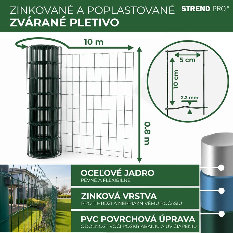 - Materiál: Pozinkovaná oceľ (Zn) s dodatočnou vrstvou PVC v elegantnej zelenej farbe (RAL 6005) poskytuje dvojitú ochranu proti korózii a UV žiareniu, čím predlžuje životnosť pletiva.