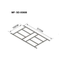 Podlahová konštrukcia vhodná pre záhradný domček. Slúži ako podklad pre podlahovú krytinu. Poskytuje stabilitu a pevnosť tak, aby domček stál rovnomerne a nehýbal sa. Vďaka podlahovej konštrukcii sa voda nedostane dovnútra a neznehodnotí podlahu ani vybavenie. Rozmery: 102x217 cm.