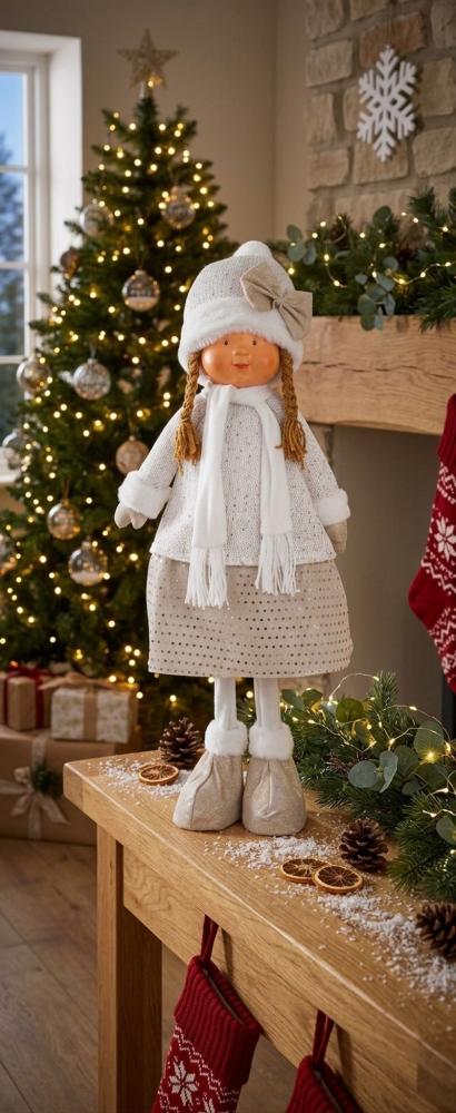 Krásna postavička MagicHome dievčatka v bielej čiapke skrášli váš domov počas vianočného obdobia. Farba je bielo-béžová. Postavička je vyrobená z tkaniny a jej výška je 79 cm.