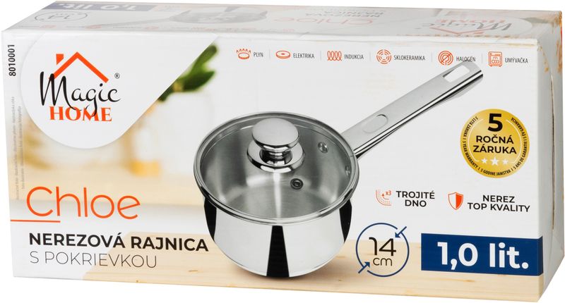 Rajnica MagicHome Chloe je ideálnym riešením pre každodenné varenie a prípravu jedál.S priemerom 14 cm a objemom 1 literponúka spojenie špičkovej kvality, moderného dizajnu a praktického využitia.