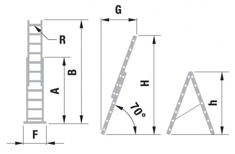 C - Šírka rebríka (m): 0,397G - Hrúbka zloženého rebríka (m): 1,76