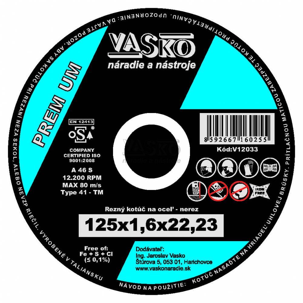 Rezný kotúč na kov a nerez 125 x 1,6 x 22,2 PREMIUM