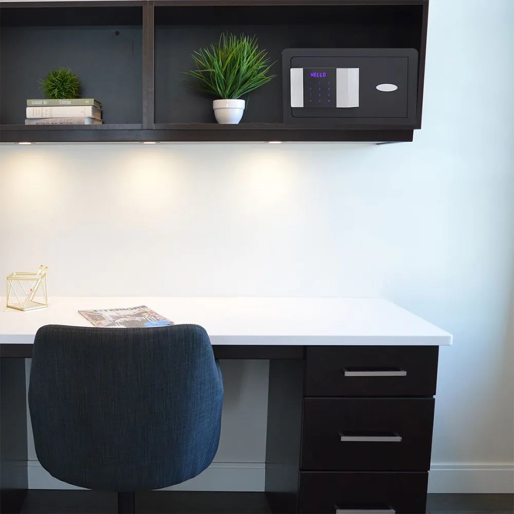 Najmenší nábytkový sejf z modelovej rady Prestige ponúka bezpečné uloženie cenností, drobných šperkov alebo cestovných dokladov. Zamykanie elektronickým zámkom a možnosť mechanického núdzového otvárania. Výhodou je podsvietený LED panel pre ľahšie zadávanie kódu. Napájanie je klasickými 1,5V batériami. Vnútro sejfu je vybavené osvetlením, polstrovaním a poličkou. Sejf má otvory na spodnej a zadnej strane a jeho upevnenie tak bude hračkou. Kotviaci materiál je súčasťou dodávky.