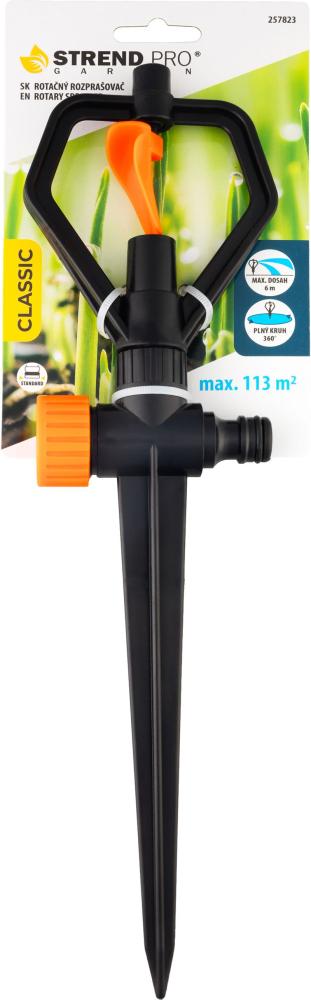Rotačný rozprašovač Strend Pro Classic je určený na efektívne zavlažovanie trávnikov a záhradných plôch. Vďaka rotačnému mechanizmu zabezpečuje rovnomerné polievanie v plnom kruhu 360°.