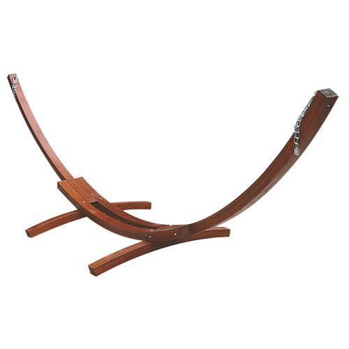 Drevený stojan na hojdaciu sieť je krásny a funkčný doplnok do vašej záhrady. Hlavná konštrukcia je polkruhového tvaru a je vyrobená z pevného dreva. Plachtu hojdacej siete je potrebné upevniť na retiazky vysiace na oboch koncoch stojanu. Nosnosť je až 200 kg. Rozmery stojanu sú 410 x 120 x 130 cm. Stojan nie je možné zložiť. Počas zimného obdobia je vhodné stojan uložiť do vnútorných priestorov, čím ho budete chrániť pred poškodením a navlhnutím od dažďa alebo snehu.