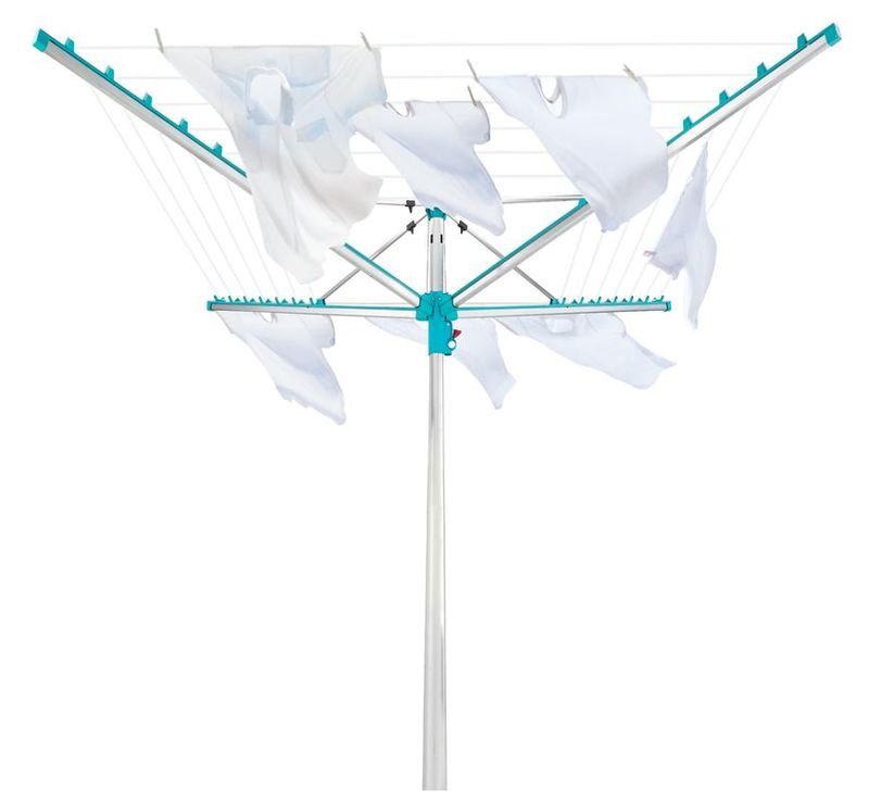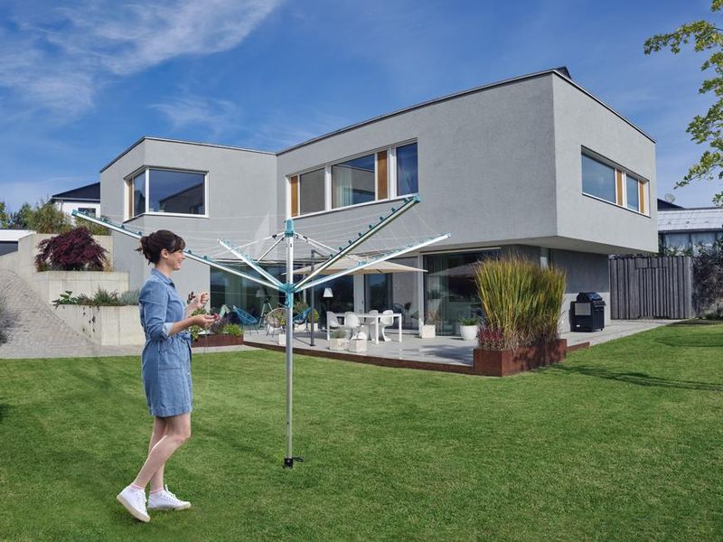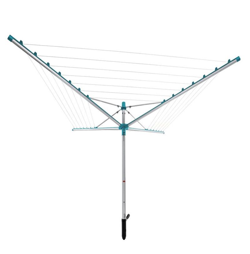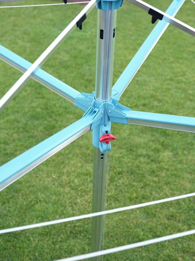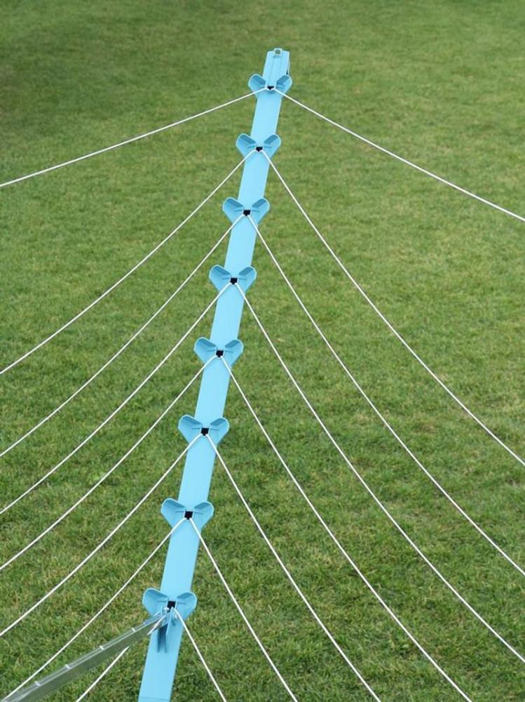 Vonkajší otočný sušiak, odolný voči vplyvom počasia, nehrdzavejúci hliníkový rám, patentovaný systém zaťahovania šnúr do bočníc. Šnúry sú chránené pred dažďom a špinou, mechanizmus pre ideálne vypnutie šnúr, možnosť zavesenia ramienok na konce ramien sušiaku. 50 m šnúr = 5 práčok bielizne. Súčasťou balenia je držiak na zabetónovanie.