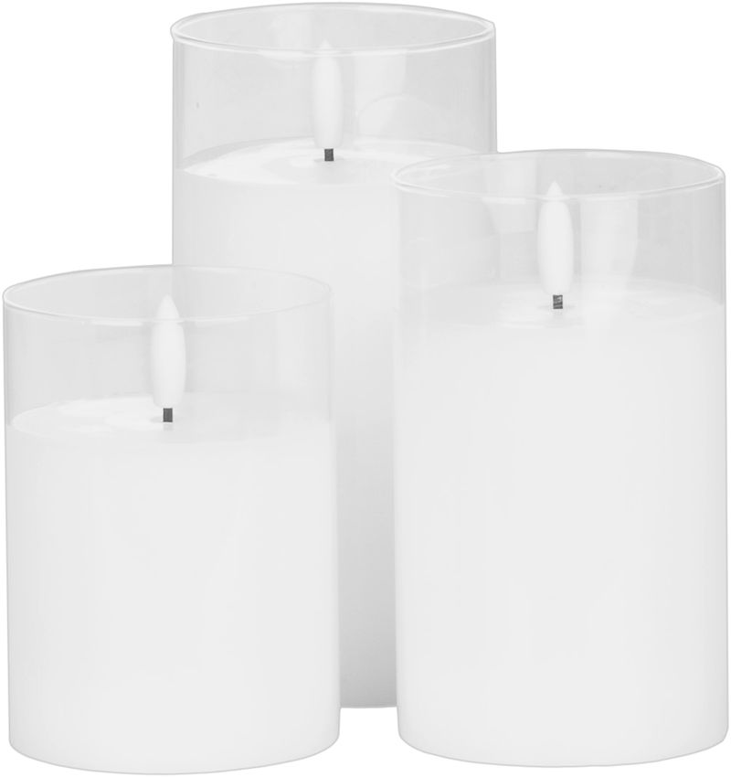 Sviečka MagicHome Vianoce, vosk, 1xLED teplá biela, pohyblivý plameň, 7.5x10/12.5/15 cm, 3