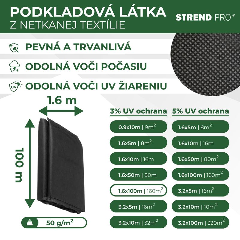 Druh produktu: Netkaná textíliaŠírka (m): 1,6
