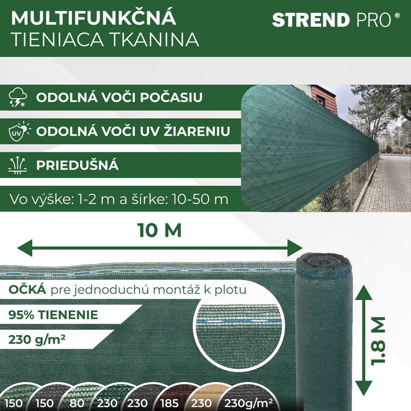 - Tkanina tieniaca PRIVAT.NET 1,8x10 m, sieť, HDPE, UV, 230 g/m2, 95% zelená