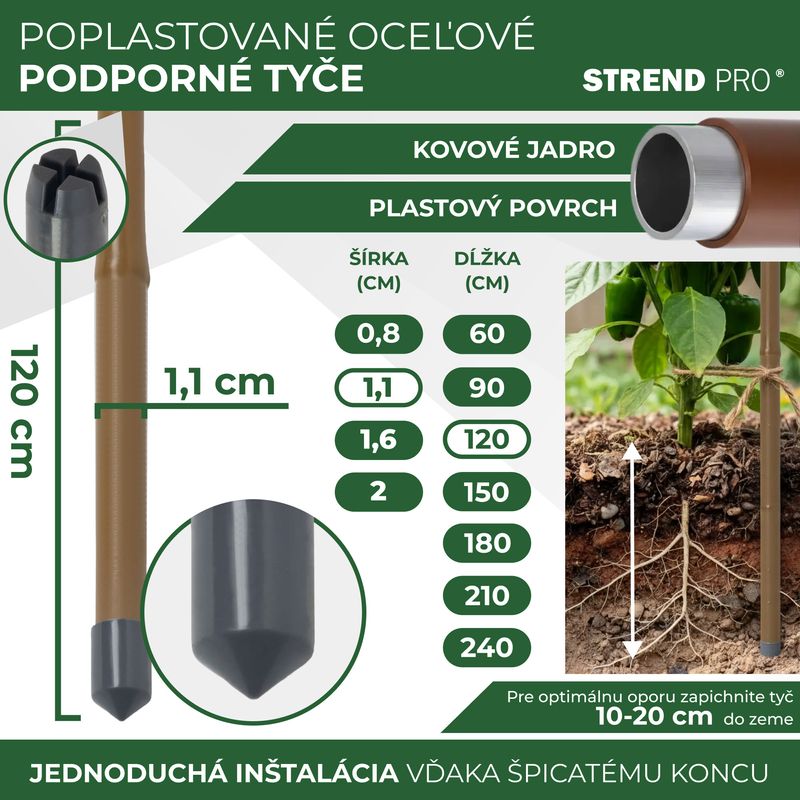 - Tyč Garden TY 11/1200 mm, oceľ/plast, hnedá, oporná k rastlinám a paradajkám
