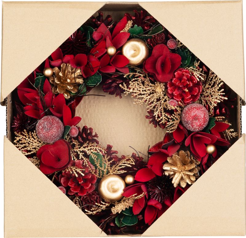 - Veniec MagicHome Vianoce, závesný, červeno-zlatý, 30 cm