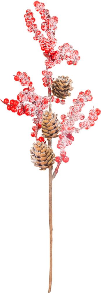 Vetvička MagicHome Vianoce, bobuľky so šiškami, červená, 34 cm