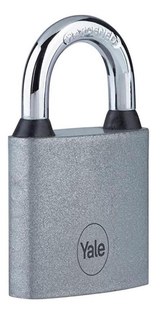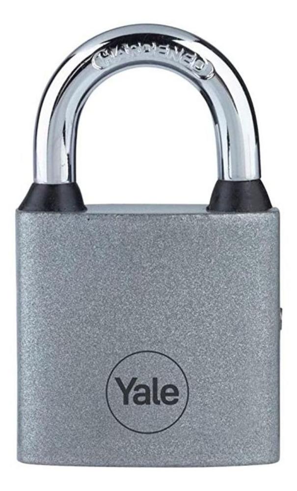 Visiaci zámok Yale so šírkou 50 mm so štandardnou úrovňou zabezpečenia. Železná konštrukcia disponuje tvrdeným strmeňom, ktorý zabraňuje prerezaniu. Odolný zámok testovaný na 10 000 cyklov (otvorenie a zatvorenie) pre optimálny výkon. Balenie obsahuje 3 ks kľúčov.